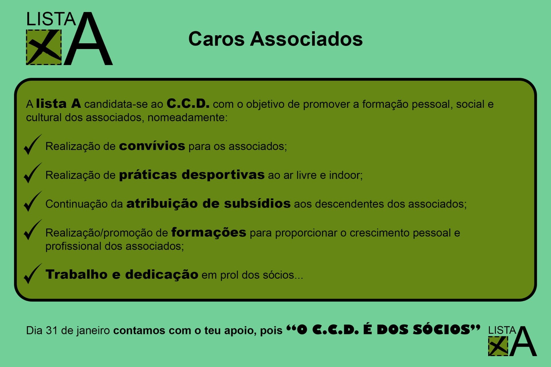 Eleição dos novos órgãos sociais do CCD para o triénio 2020/2022.