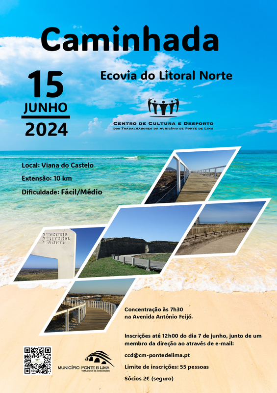 O Centro de Cultura e Desporto dos Trabalhadores do Municipio de Ponte de Lima, vai realizar no próximo dia 15 de junho, uma Caminhada - Ecovia do Litoral Norte - Viana do Castelo.